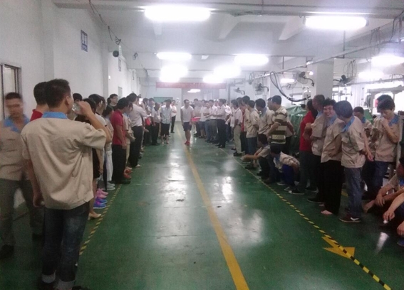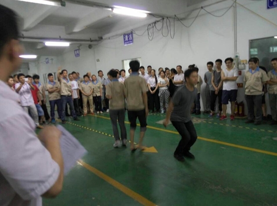 下午15点30分,运动会举行开幕式。全体员工在比赛场地紧急集合,整齐的队伍中口号声此起彼伏: “运营,运营,运动必赢” ──这是运营中心的口号;“狭路相逢勇者胜”──这是环保生产部的口号;“团结一致,勇争第一”──这是PCB和电器部的口号。